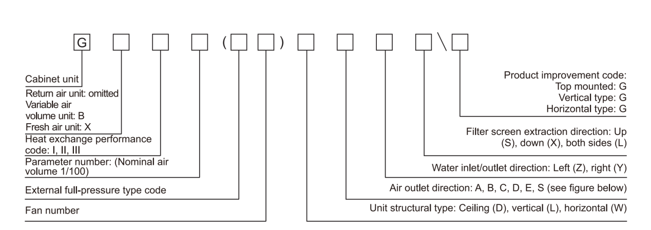 Refrigerating working condition of standard fresh air: Air inlet dry bulb temperature: 35℃, air inlet wet bulb temperature: 28℃, water inlet temperature: 7℃, and water outlet temperature: 12℃;