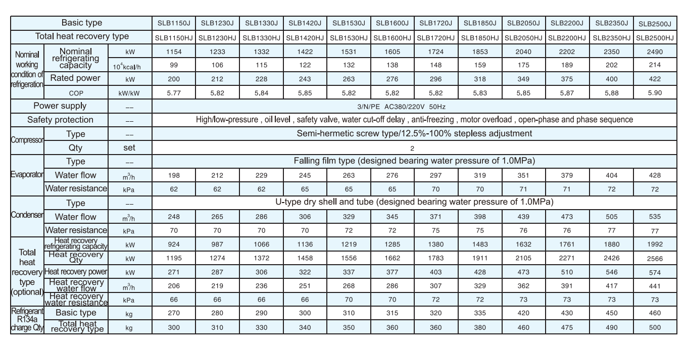 Total heat recovery type | SLB1150HJ | SLB1230HJ | SLB1330HJ | SLB1420HJ | SLB1530HJ | SLB1600HJ | SLB1720HJ | SLB1850HJ | SLB2050HJ | SLB2200HJ | SLB2350HJ | SLB2500HJ | ||