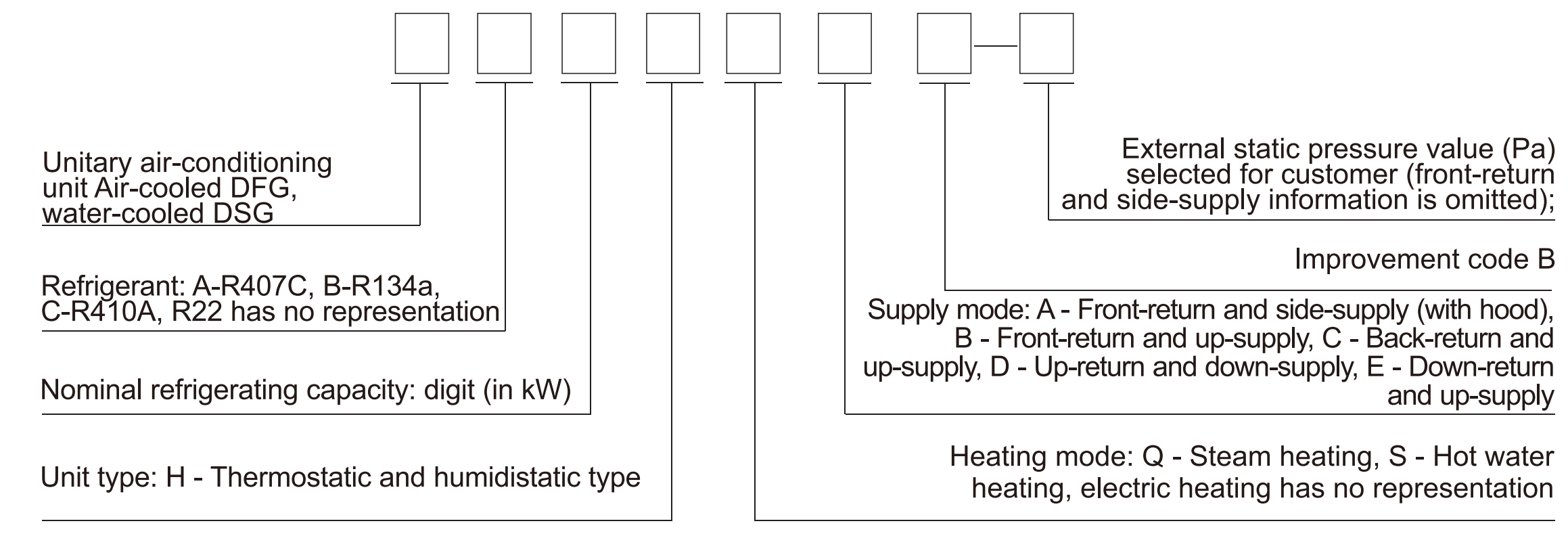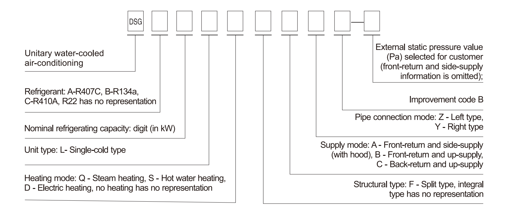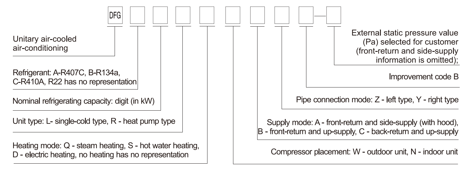 Note: During unit selection,pay attention to the improvement code B; for unit less than 25kW, the unit type shall refer to the technical parameters and shall not comply with above product model interpretation.